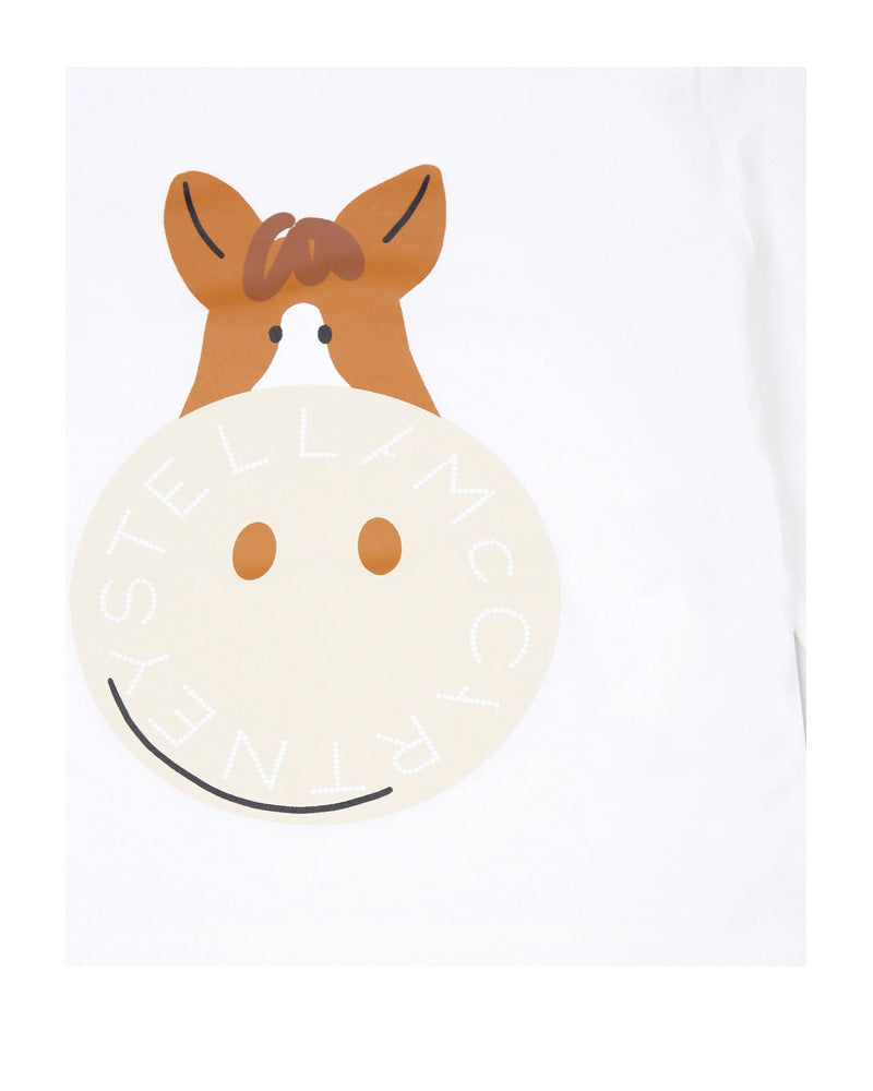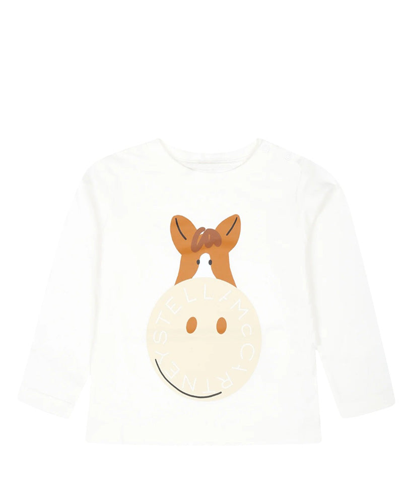 T-shirt a maniche lunghe, con girocollo a costine e chiusura con bottoni automatici sulla spalla. È decorata con stampa cavallo e logo sul davanti.