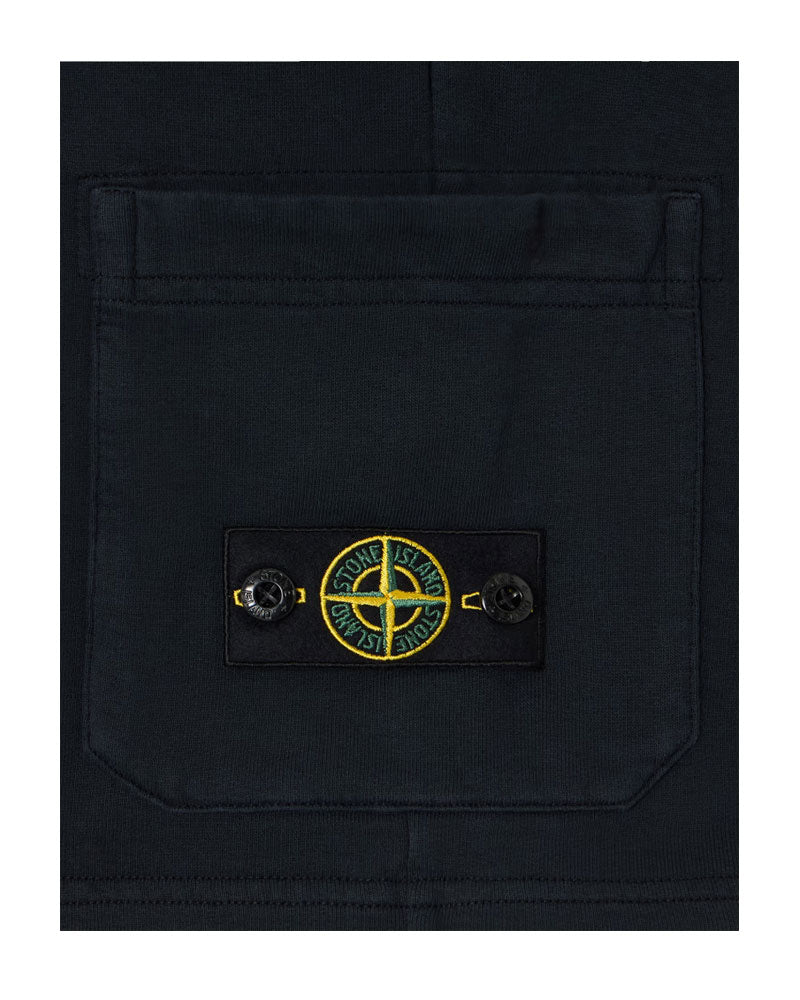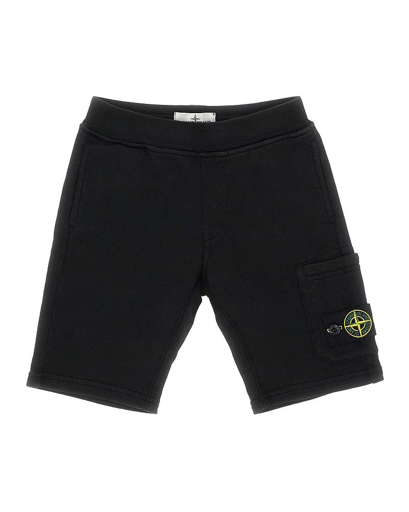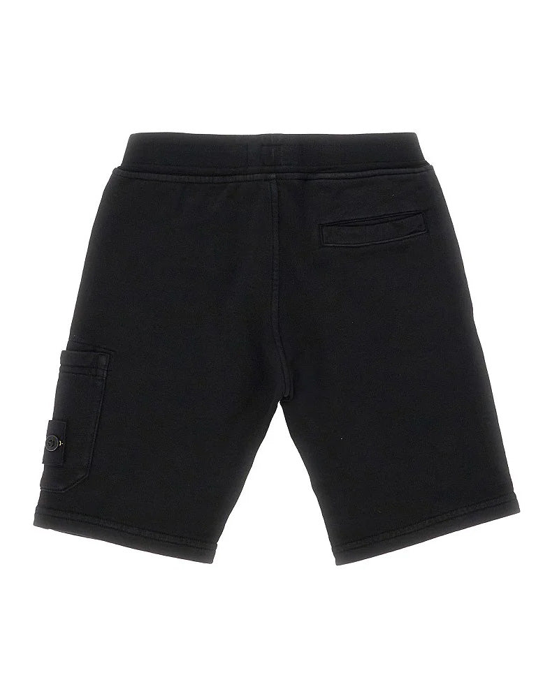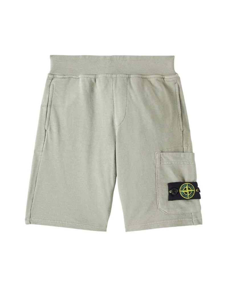 Bermuda realizzatto in felpa con vita elasticizzata, tasche laterali, tasca aplicata sulla gamba, applicazione compass sulla gamba.