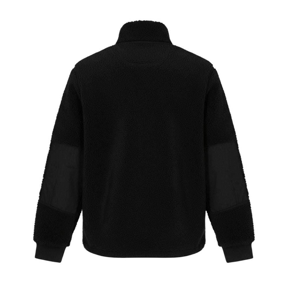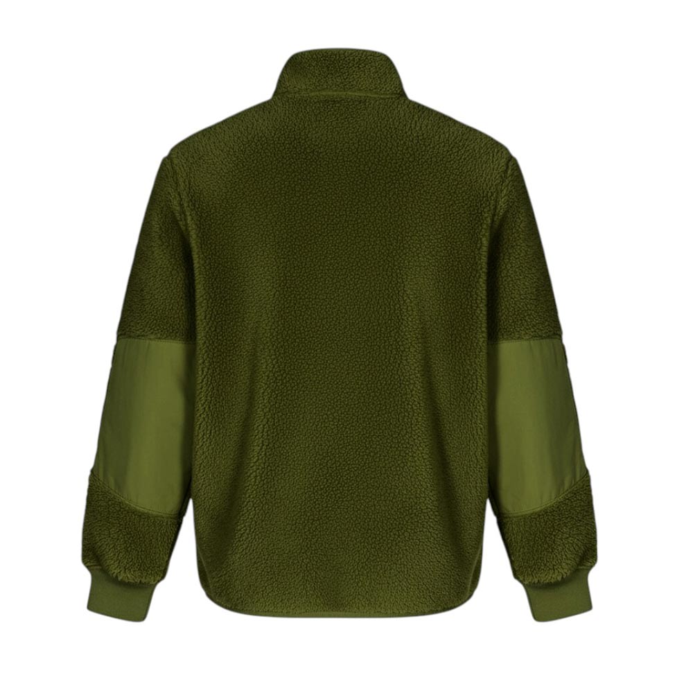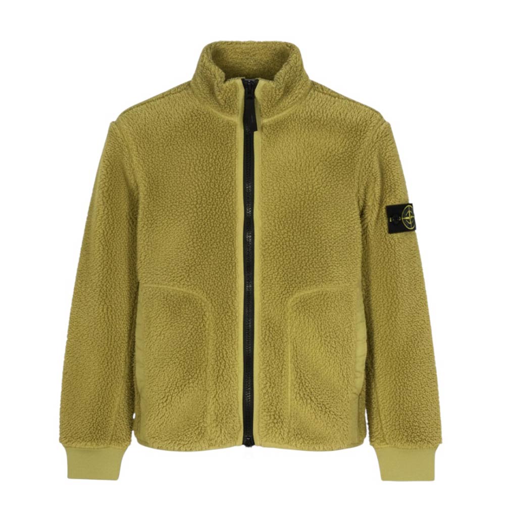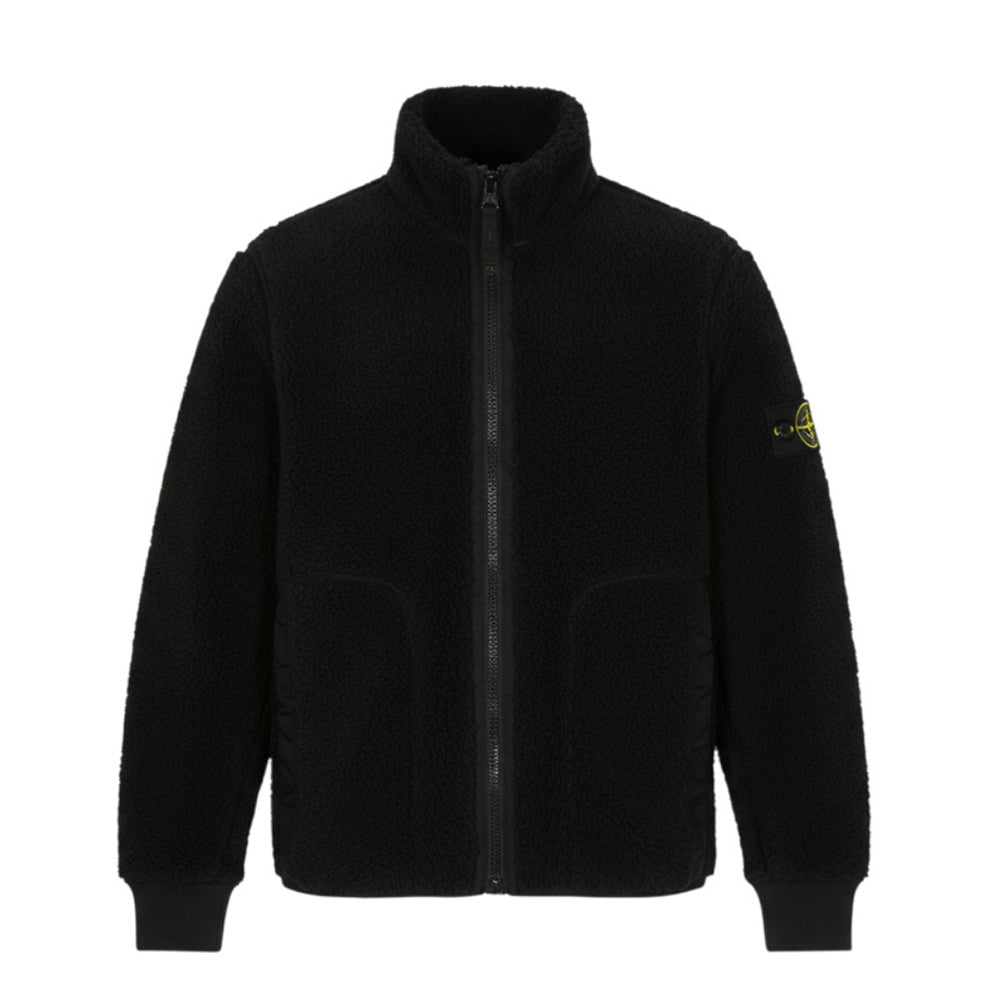 Giacca Teddy realizzata in pelliccia ecologica. Presenta collo alto, chiusura frontale con zip, maniche lunghe con inserti in cotone, polsi a coste, fodera in pile e due tasche laterali a filetto. È decorata con Badge Stone Island sulla manica sinistra.