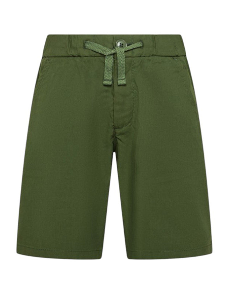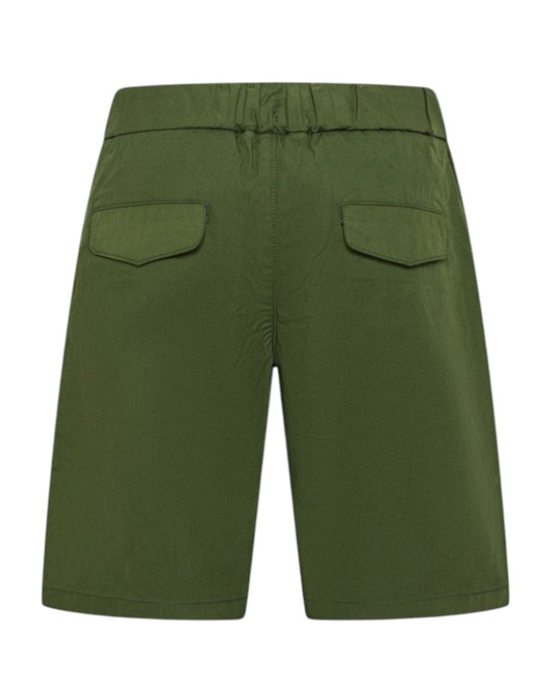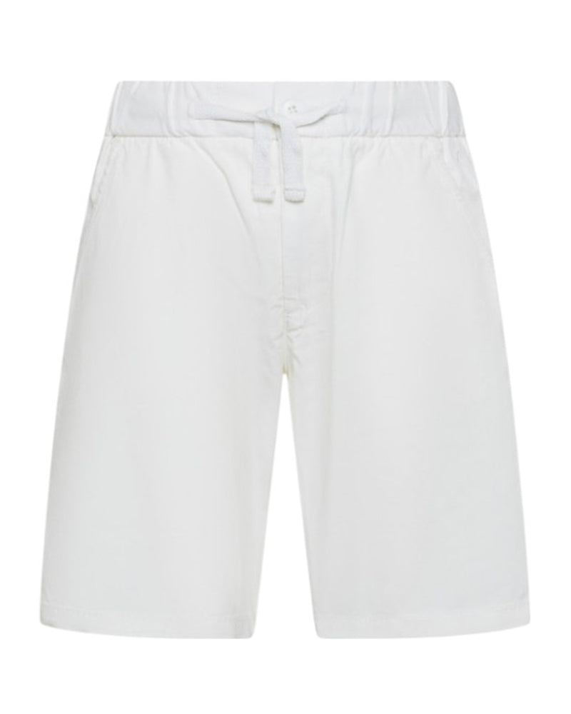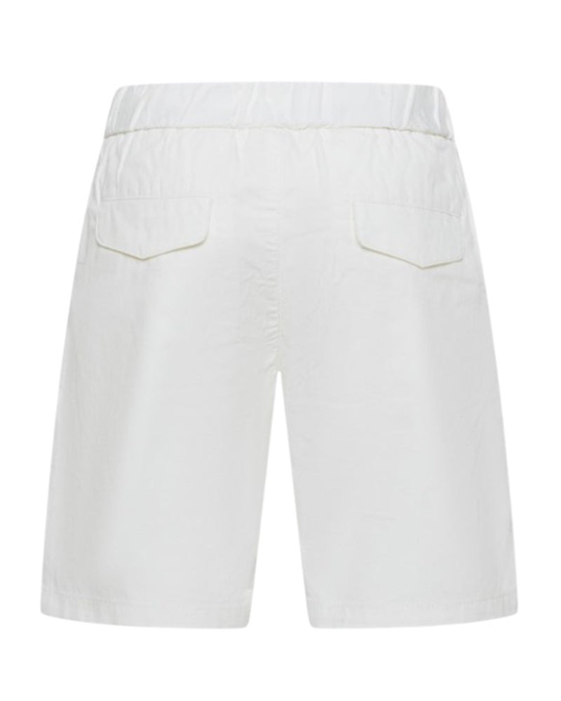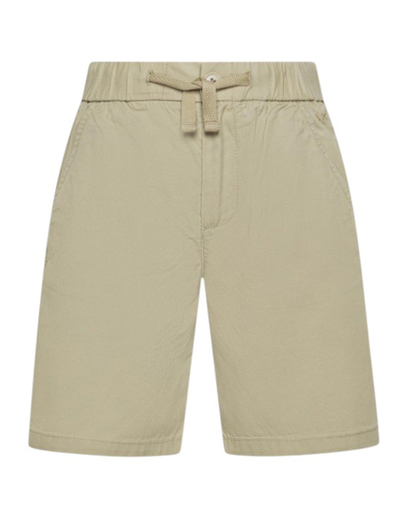 Bermuda realizzato in cotone da bambino. Presenta vita elasticizzata con coulisse, chiusura frontale con bottone e zip, tasche laterali america e tasche con patta sul retro. È decorato con logo ricamato sul lato.