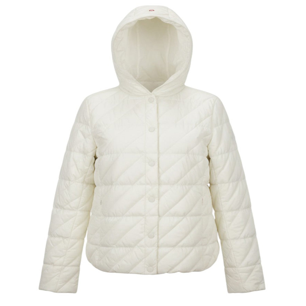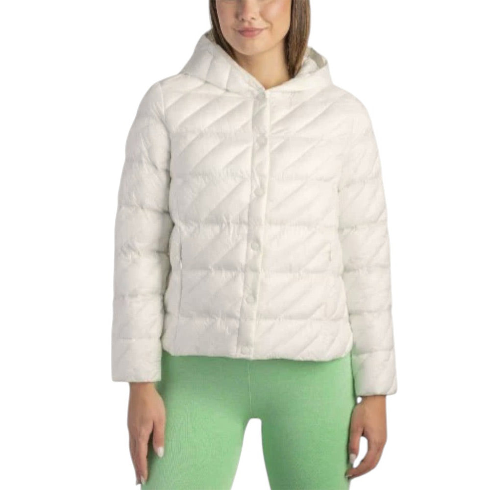 Jacke aus leichter und recycelter Mikrofaser, Anti-Drop-Behandlung, innen mit Plume no Plume® gepolstert, zentrale Öffnung mit automatischen Druckknöpfen, praktische Seitentaschen mit unsichtbarem Reißverschluss, feste Kapuze, seitliche Belüftungsöffnungen.