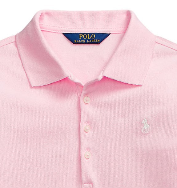 Girls' long-sleeved cotton pique polo shirt, front button placket, embroidered logo on the chest.