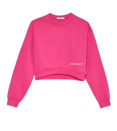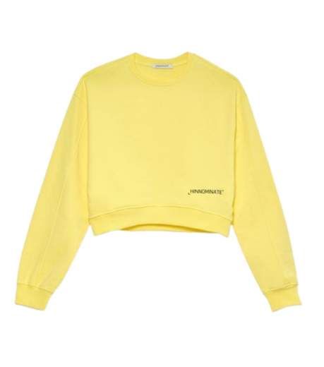 Crew neck sweatshirt with long sleeves, cropped model, logo printed on the front, ribbed trims.