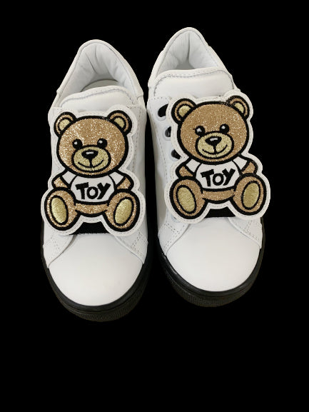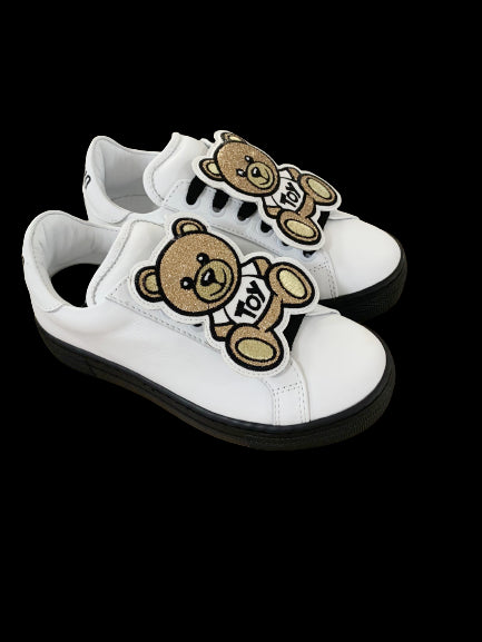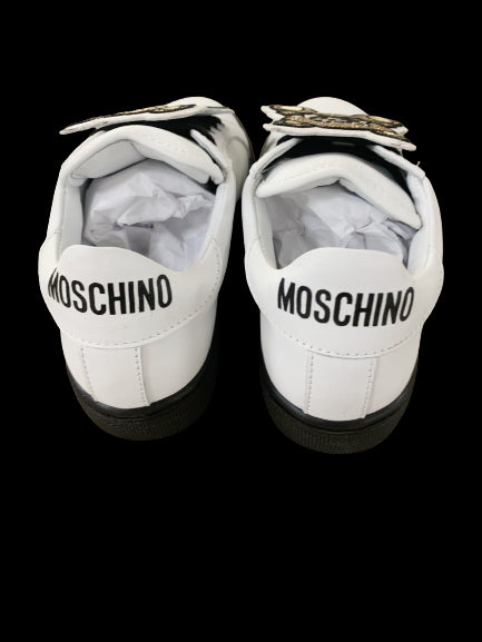 Moschino sneakers with logo on the back and removable Teddy logo inserted in the lace.
