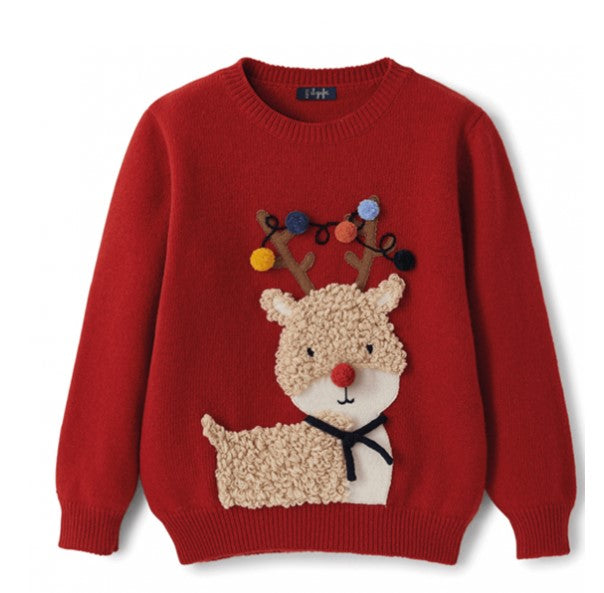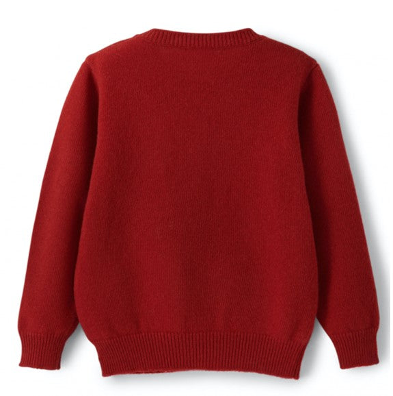Crew neck sweater with applique on the front.