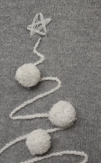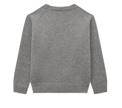 Crew neck sweater, with contrasting embroidery and applications on the front.