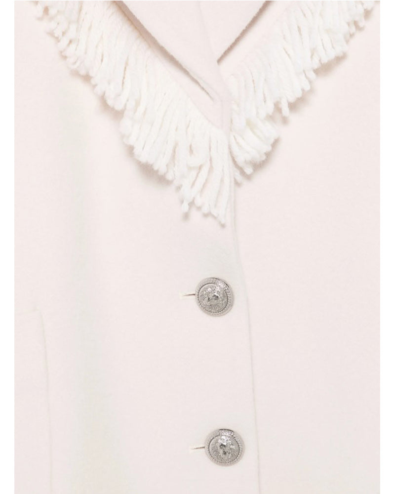Balmain Cappotto avorio in lana con frange BV2B60-E0086