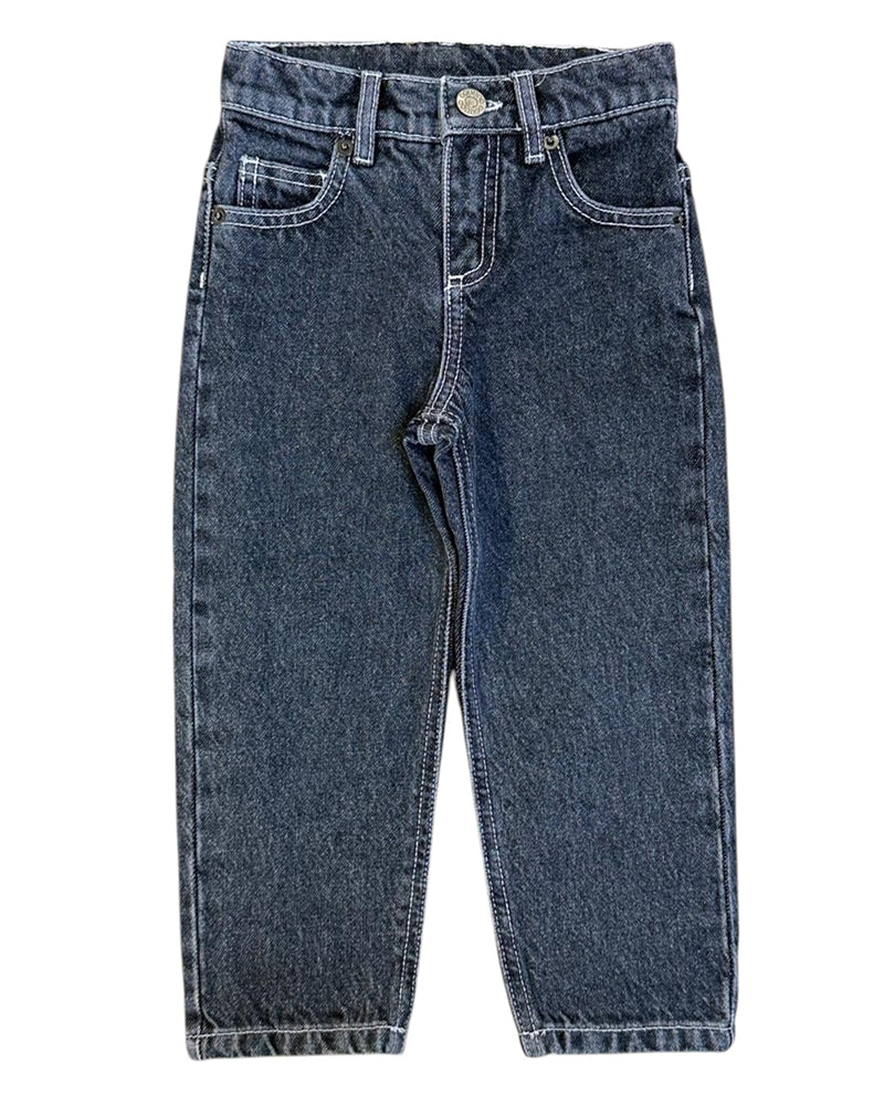 Jeans realizzati in denim di cotone da bambina, modello cinque tasche. Presentano chiusura frontale con zip e bottone, passanti per cintura, vita regolabile grazie ad elastico interno con bottoni, patch logata. Sono decorati con logo ricamato sulla parte posteriore.