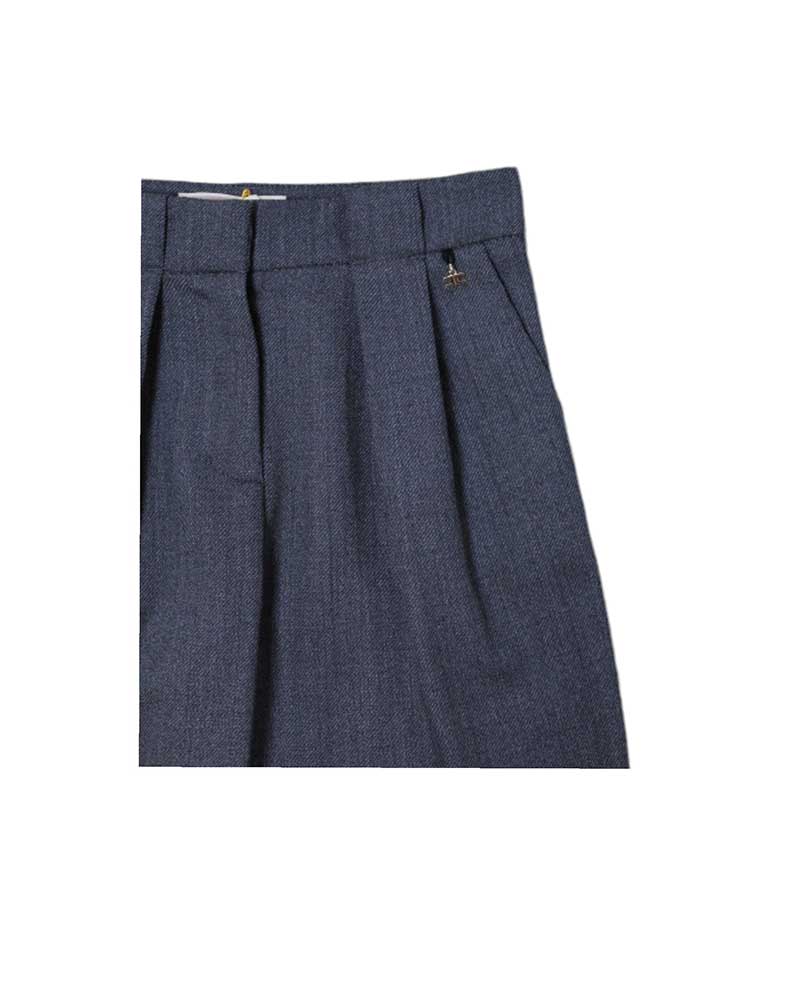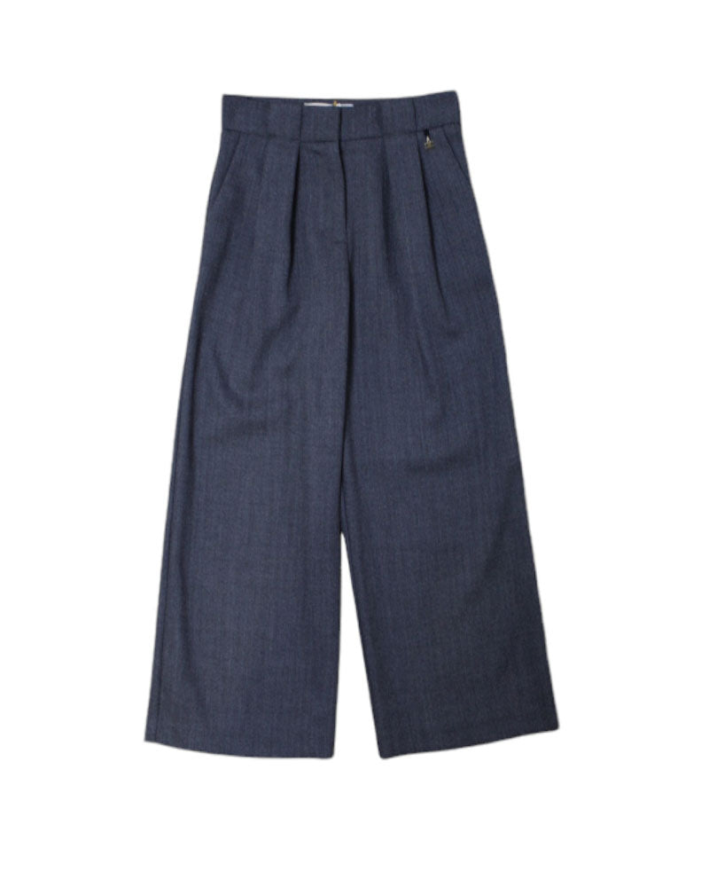 Palazzo trousers with pleats, side American pockets, hidden front fastening with zip and hook, applied symbol.