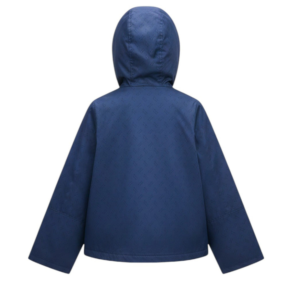 Giubbino antivento realizzato in nylon. Presenta cappuccio fisso, chiusura frontale con zip, maniche lunghe, due tasche applicate sul davanti e orlo svasato. È decorato con logo monogram all-over.