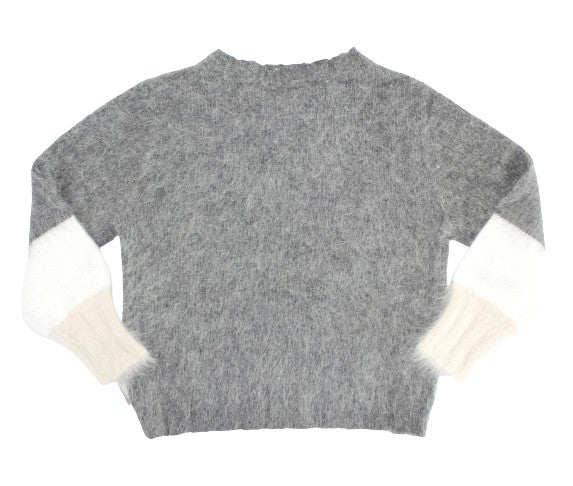 Crew neck sweater in mohair wool, sleeves with contrasting inserts.