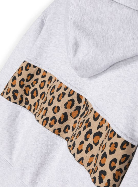 Long sleeve hoodie, low armhole, print on the front, spotted print on the back.