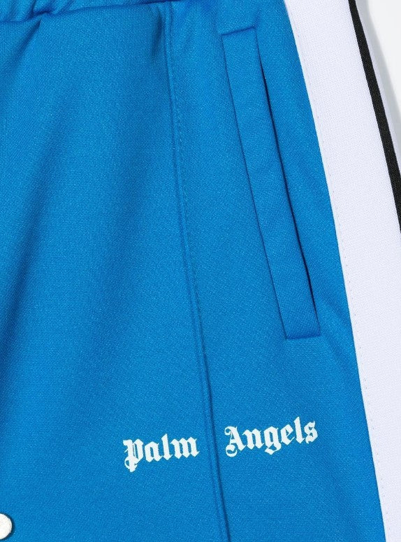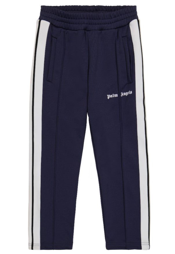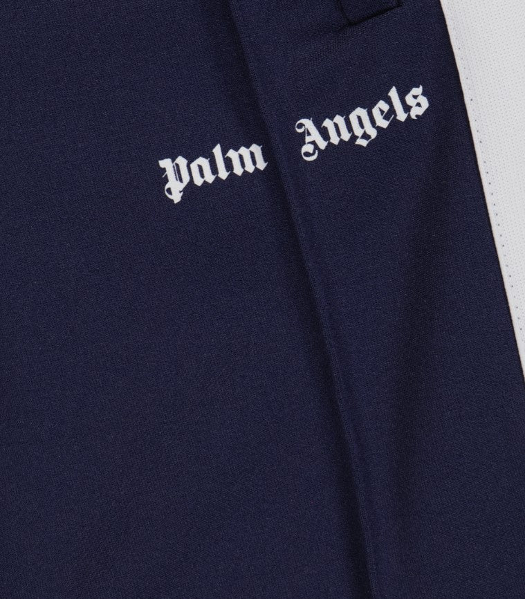 Palm Angels nylon trousers, elasticated waist, iconic side stripes, welt pockets, logo on the front.