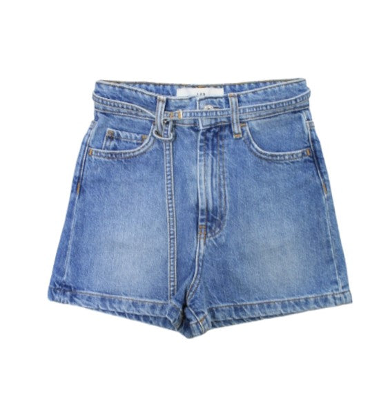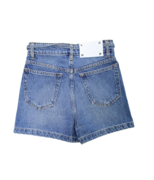 Cotton denim shorts, five-pocket style, front zip and button fastening, applied waistband.