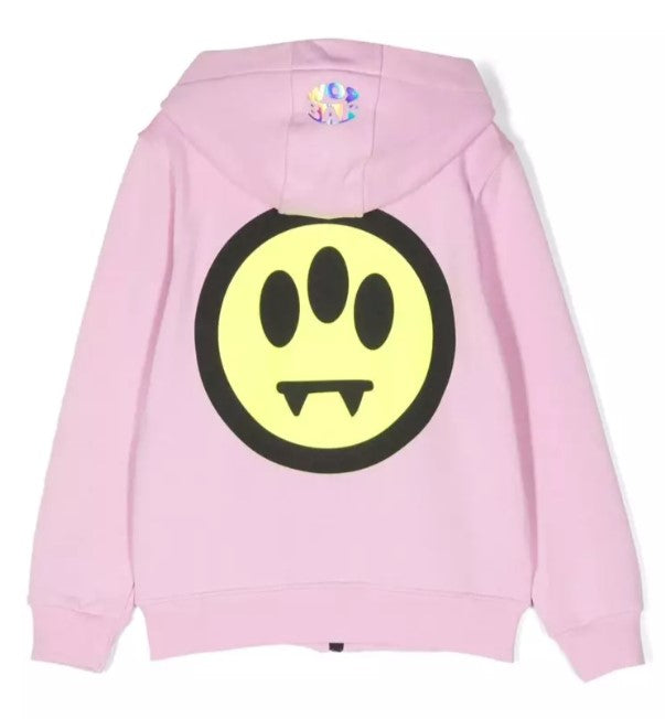 Long-sleeved zip-up hoodie with logo print on the chest and symbol on the back, ribbed trims.