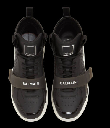 Balmain sneakers in black leather with white rubber.