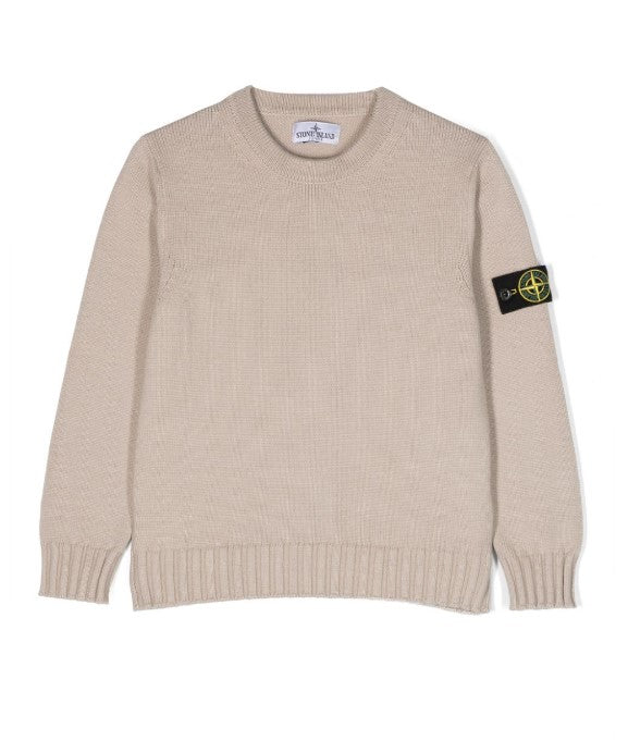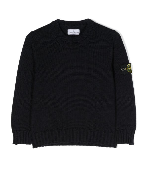 Crew neck sweater, classic logo patch applied on the sleeve, ribbed finishes