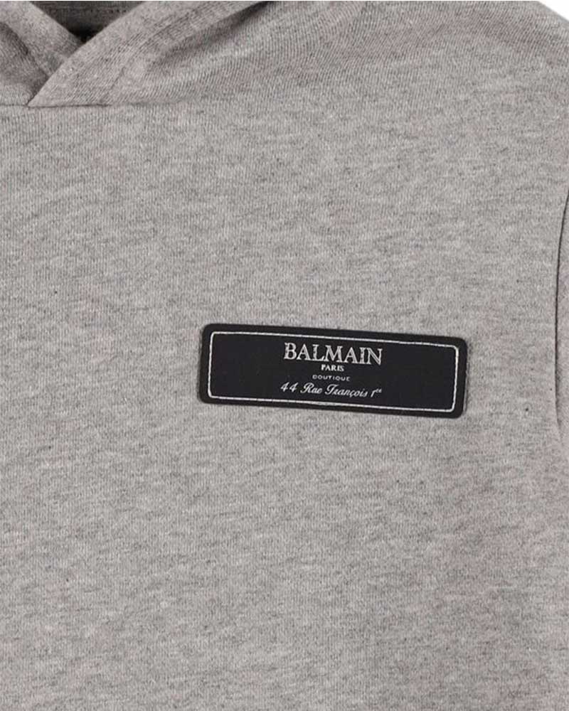 Balmain Felpa grigia con cappuccio e logo BV4P30-Z0068