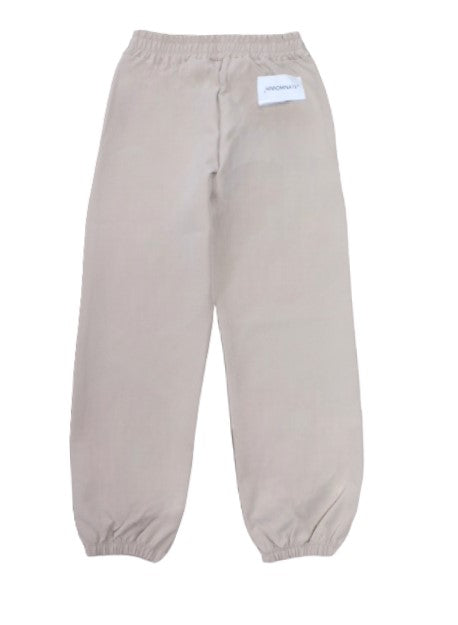 Nylon jogger trousers, elasticated waist and ankle, side welt pockets, logo patch application on the back.