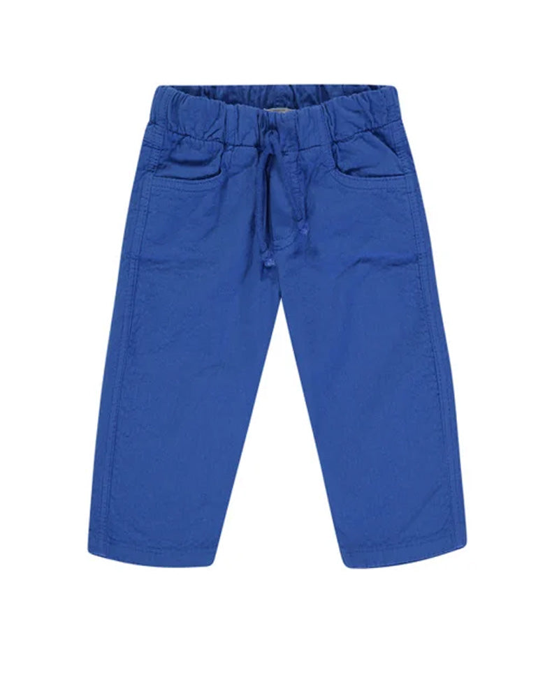 Pantaloni realizzati in cotone, tessuto goffrato, vita elasticizzata, laccetto in vita, tasche laterali tonde.