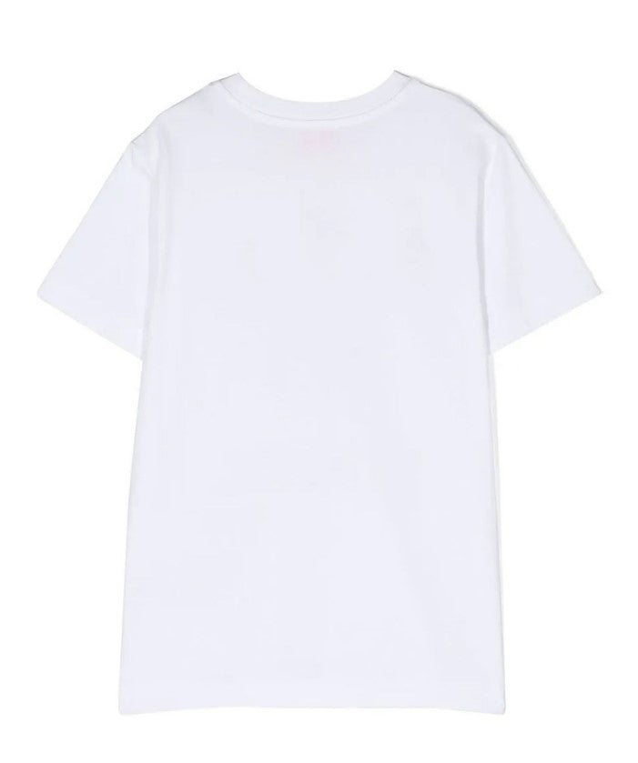 Crew neck, short sleeve cotton T-shirt, contrasting logo print on the front.
