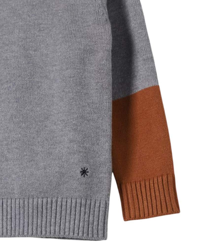 Maglia grigia da bambino caratterizzata da collo alto, maniche lunghe, simbolo del brand ricamato sul davanti e finiture a coste.