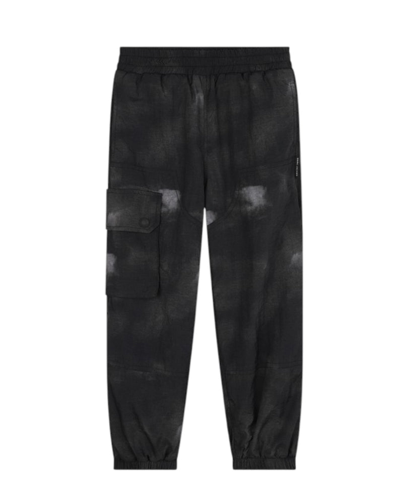 Pantaloni cargo realizzati in nylon da bambino. Presentano vita elasticizzata, tasche laterali a filo, tasca cargo con patta sulla gamba e taschino applicato sul retro, fodera in pile, fondo elasticizzato. Sono decorati con patch logo in silicone applicata sul retro.