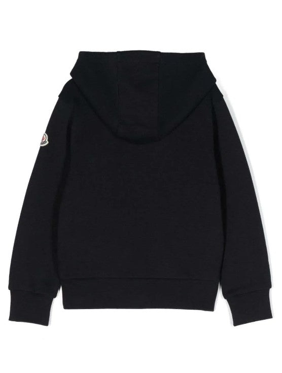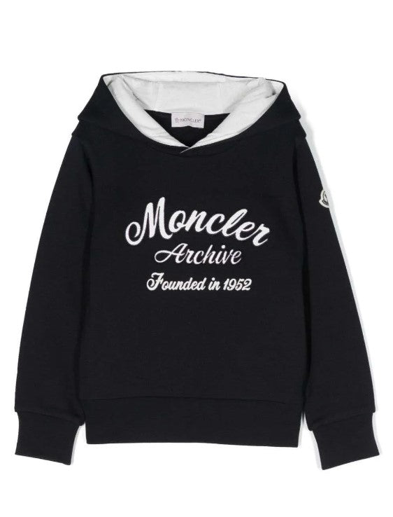 Long-sleeved hoodie, embroidered logo on the front, side welt pockets, ribbed hem and cuffs.