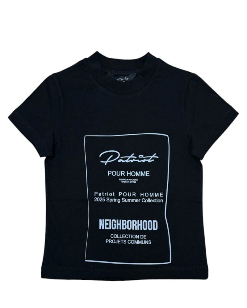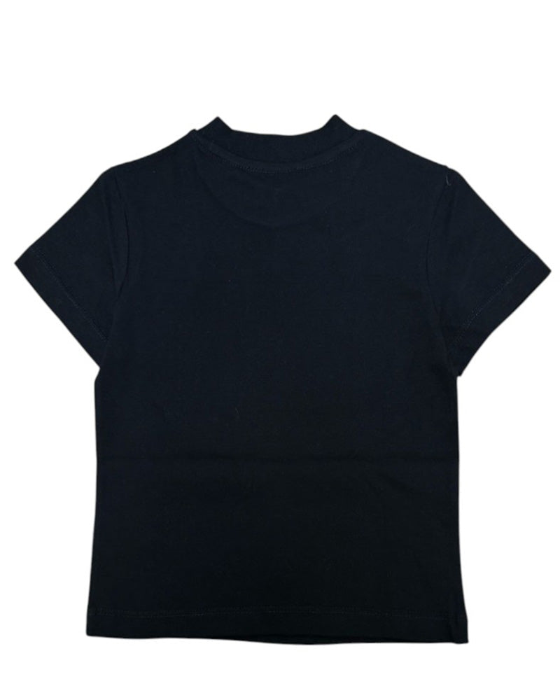 T-shirt realizzata in fresco cotone, girocollo, maniche corte, logo e stampa in contrasto sul davanti.