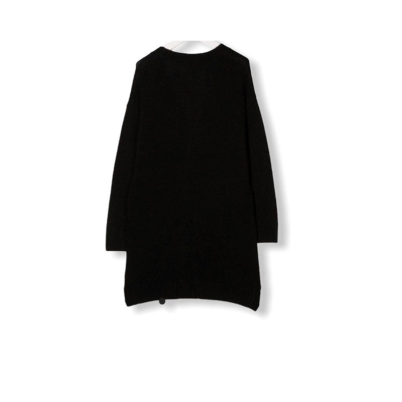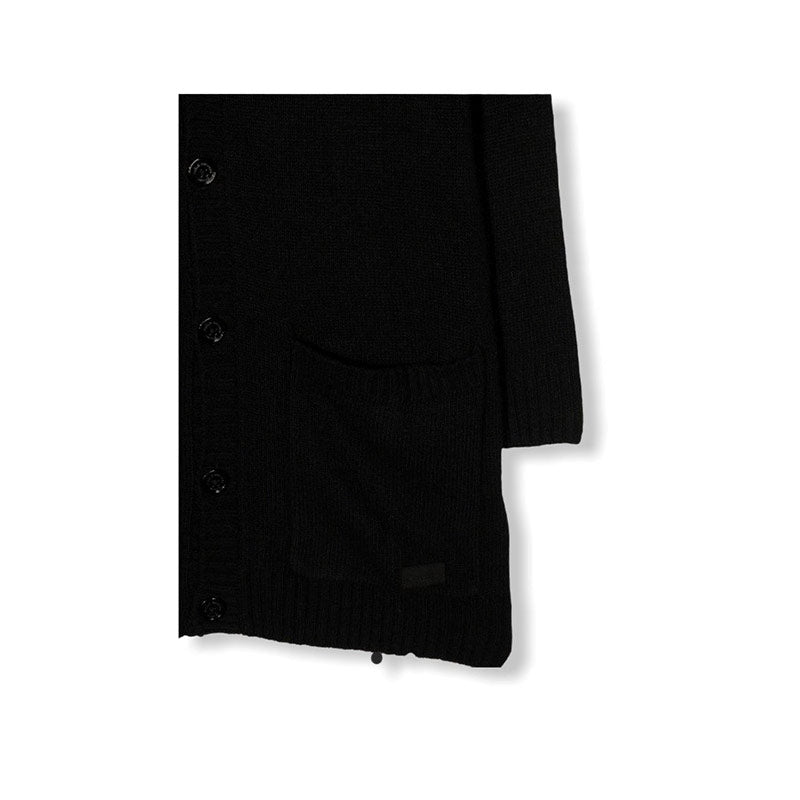Oversized cardigan sweater, with button fastening on the front, patch pockets.