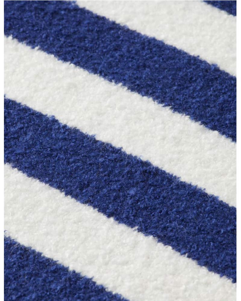 Maglia realizzata in morbido filato a righe tinto in filo, collo rotondo, maniche lunghe, finiture a coste e orlo dritto.