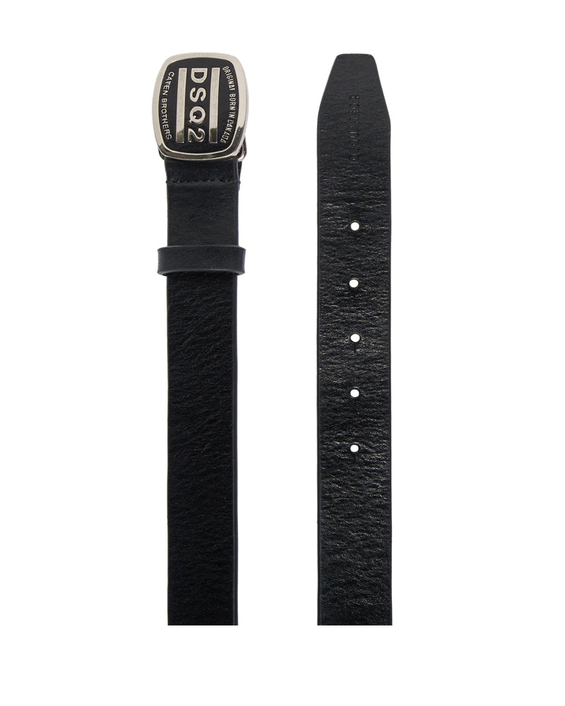 Cintura nera da bambino in vera pelle di mucca anticata. Caratterizzata da una fibbia logata DSQ2 in metallo.