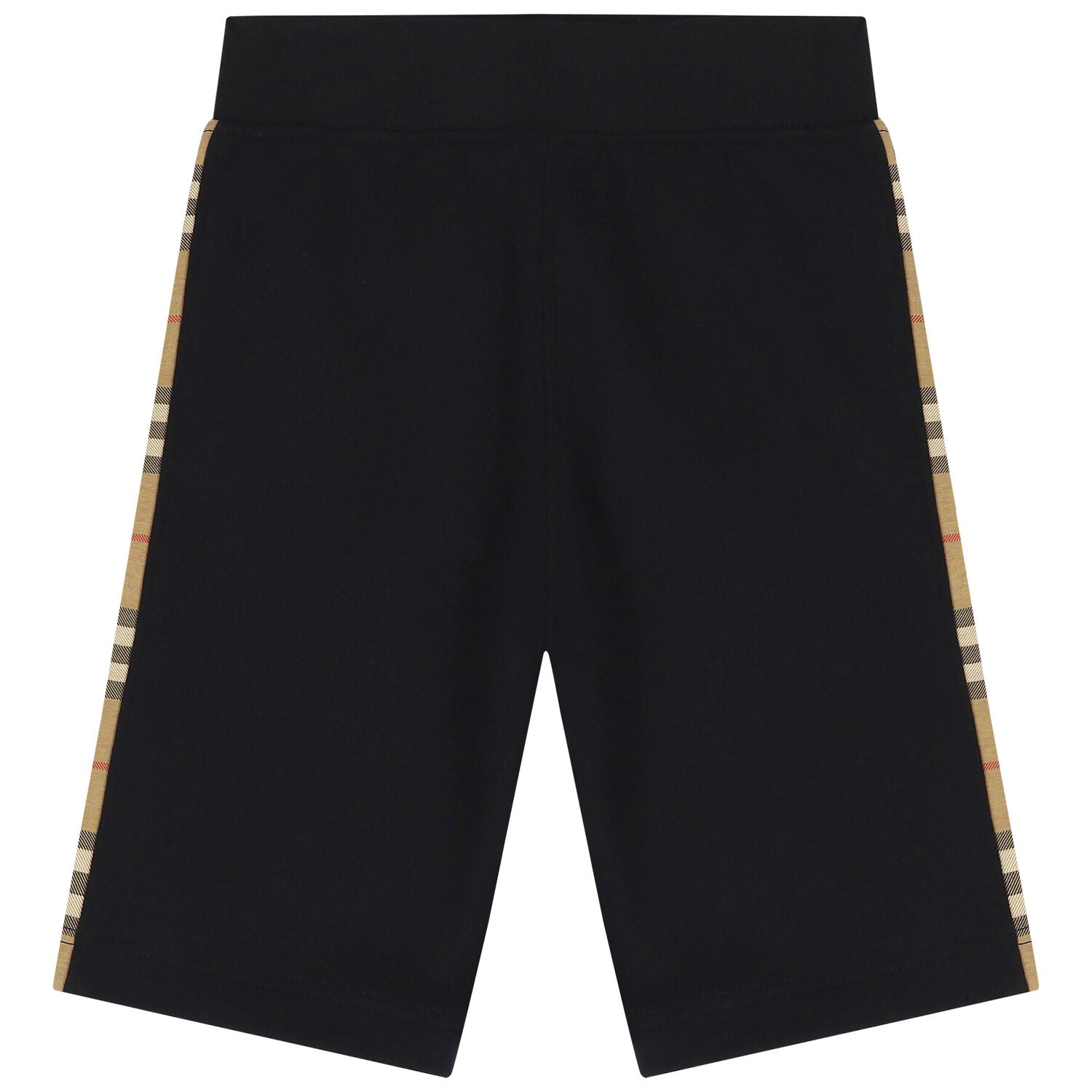 Boys' cotton sweatshirt Bermuda shorts with elastic waist, straight leg, Vintage Check side inserts.