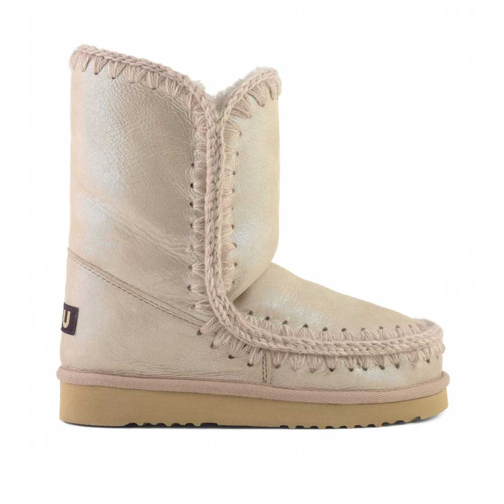 MOU eskimo 24 in pelle è realizzato con vera pelle di montone double-face divinamente calda, cuciture in lana all'uncinetto distintive di mou, tallone rinforzato e una suola esterna in EVA & gomma. Disponibile per ogni stagione in una gamma di finiture microglitterate e metallizzate, l'eskimo da 24 cm è accattivante, comodo e resistente. Altezza: 24cm. Vestibilità regolare.