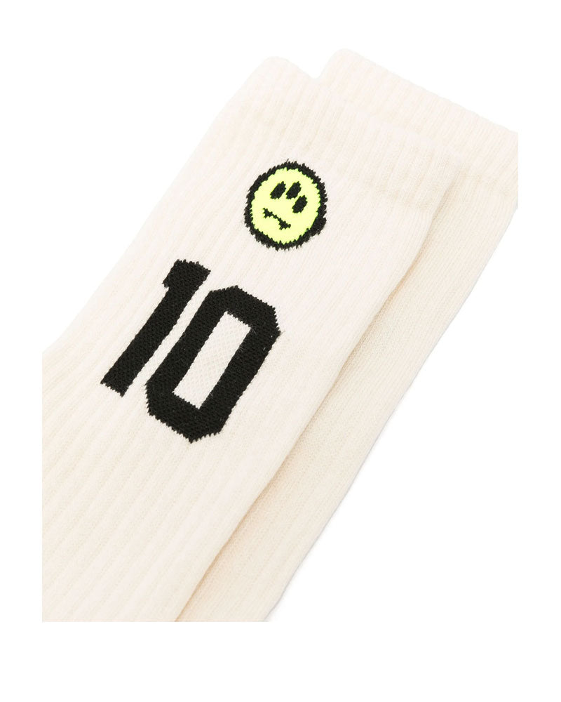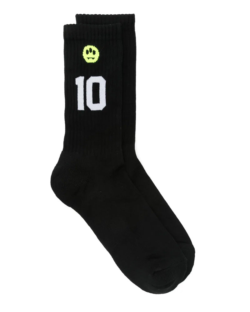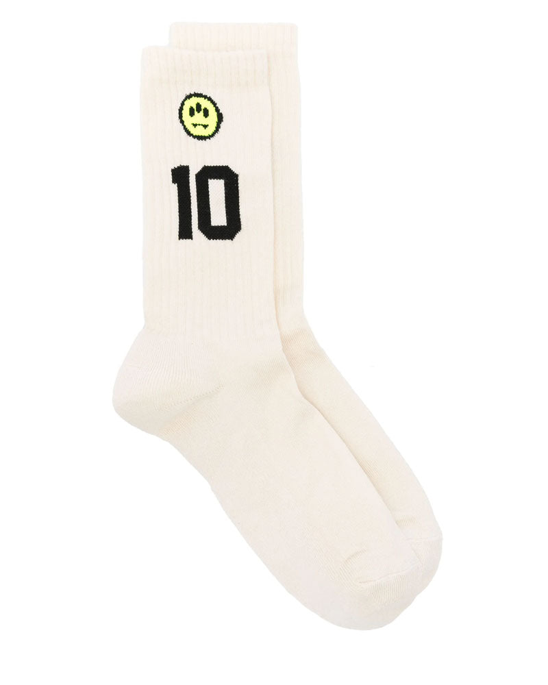 Calzettoni di Barrow a coste, realizzati con una combinazione di 90% cotone, 7% poliammide e 3% elastan per garantire comfort, traspirabilità e una perfetta vestibilità. Il design presenta uno smile a contrasto, che aggiunge un tocco di originalità e allegria al tuo look. Ideali per un outfit casual o sportivo, questi calzettoni uniscono praticità e stile, diventando il dettaglio perfetto per completare il tuo look quotidiano con un accento divertente e distintivo.