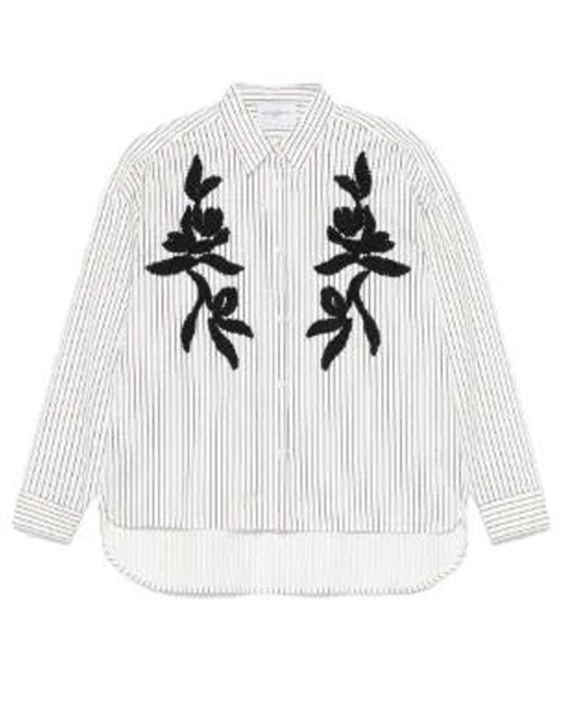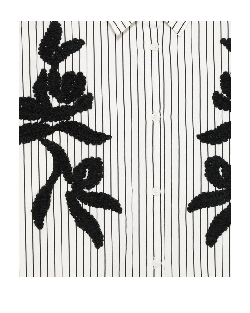 Camicia realizzata in cotone da bambina. Presenta colletto a punta, maniche lunghe con bottoncino, chiusura frontale con bottoni, fantasia a righe all-over. È decorata con iconici fiori del brand ricamati sul davanti.