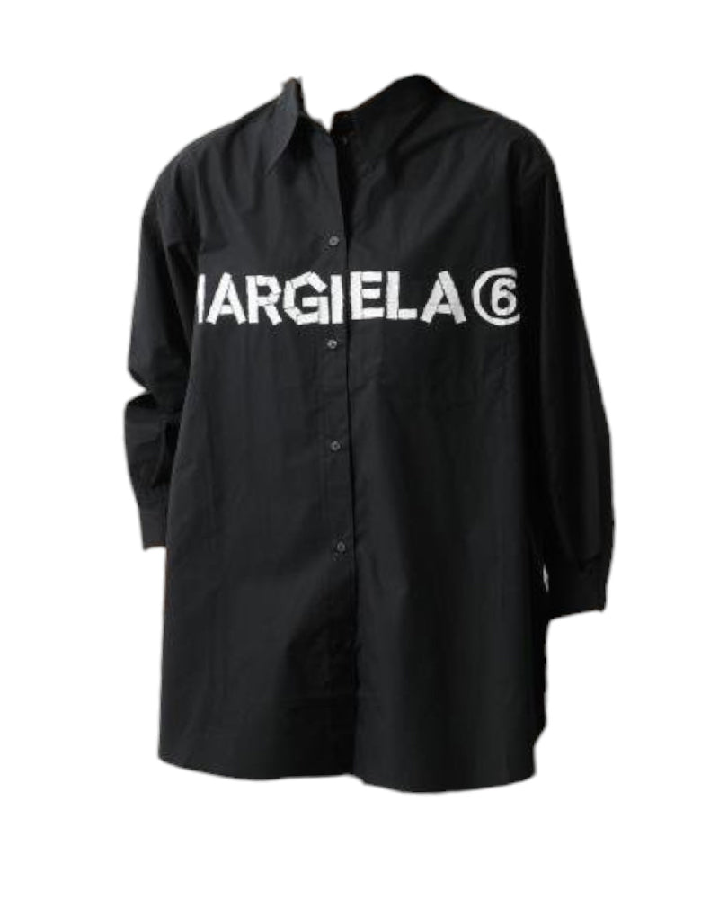 Camicia oversize in cotone tinta unita, maniche lunghe, collo con punta, abbottonatura frontale, logo stampato in contrasto.