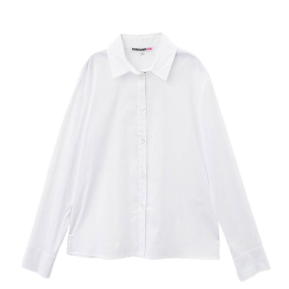 Camicia realizzata in popeline di cotone, caratterizzata da colletto a punta, chiusura frontale con bottoncini, maniche lunghe e orlo dritto.