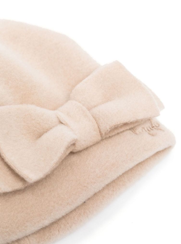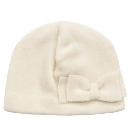 Fleece hat, applied bow and embroidered logo in tone..