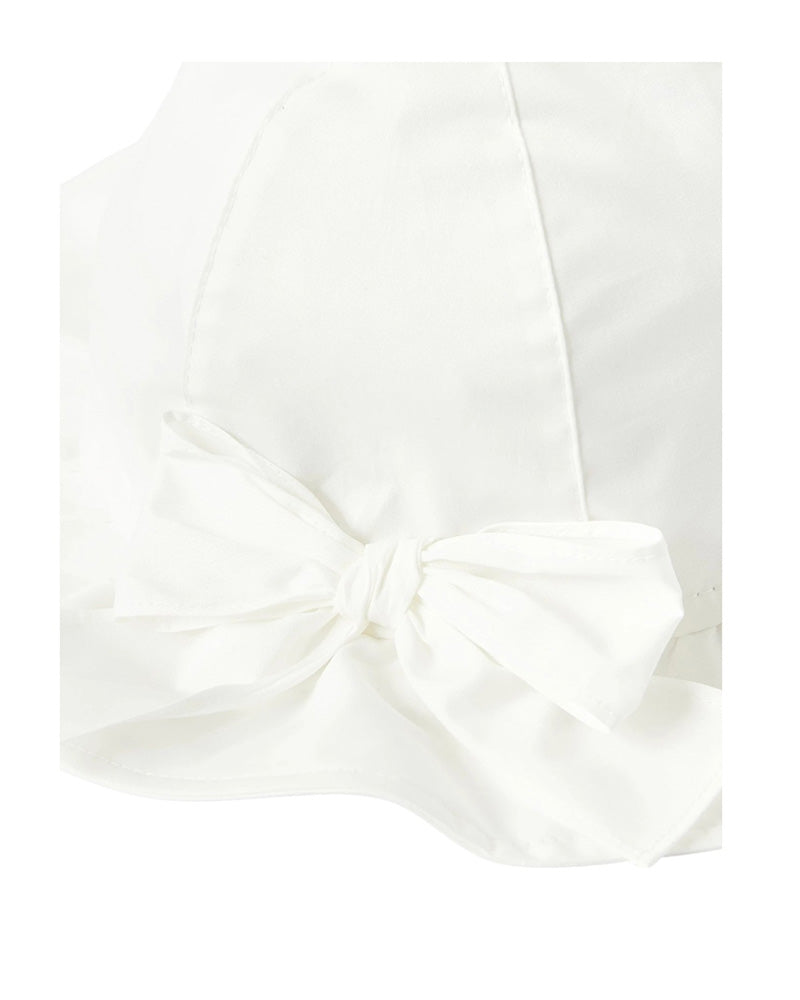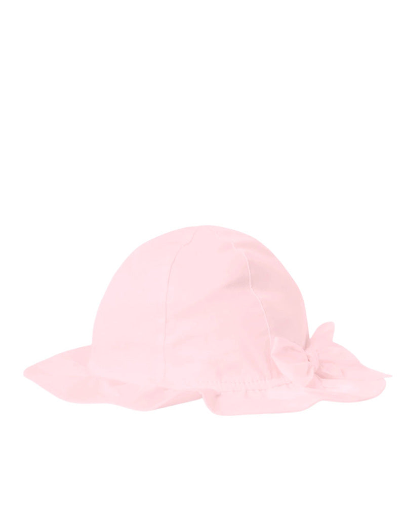 Cappello da neonata in popeline di cotone stretch, con elegante fiocco in tono applicato sulla tesa.