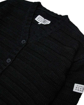 MM6 Maison Margiela Maglia Cardigan in misto lana a coste con rotture M60879-MM06P