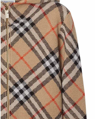 Burberry Cardigan beige in lana Check con zip e cappuccio 8104314