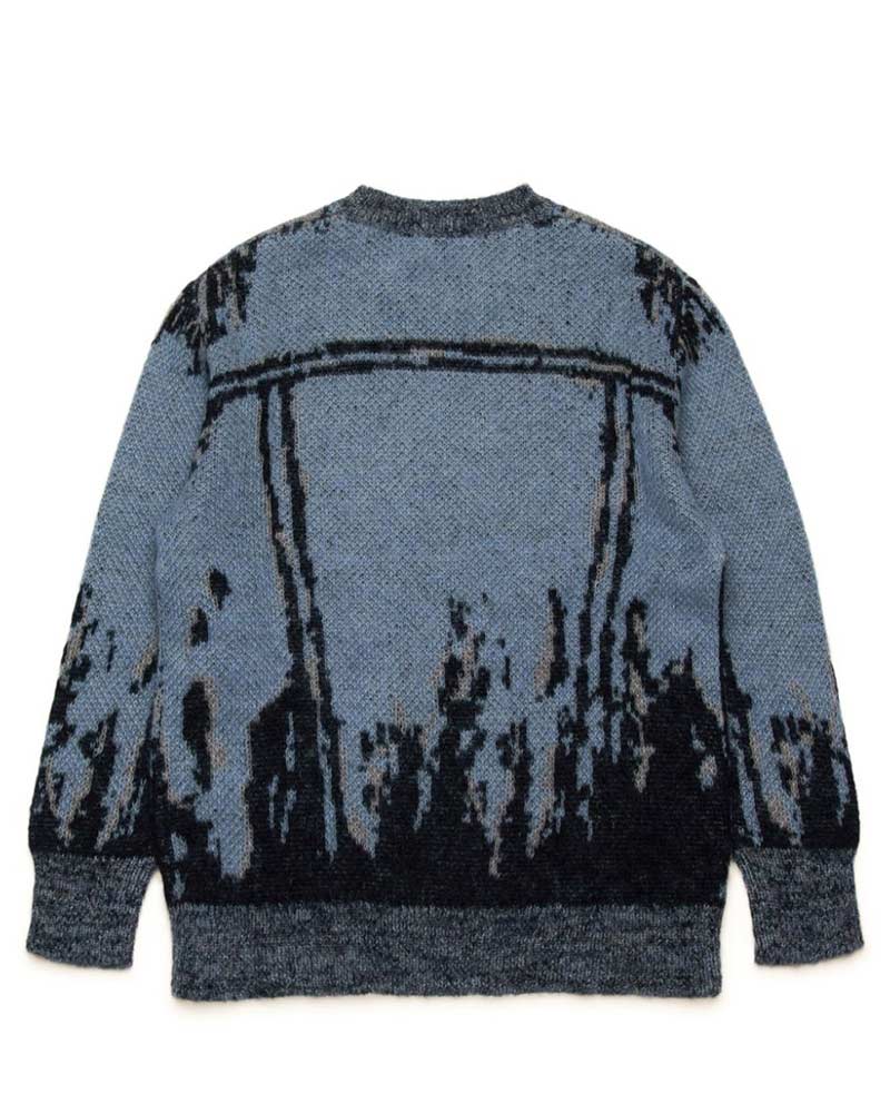 Maglia realizzata in misto lana e mohair da bambino. Presenta collo tondo, maniche lunghe, fantasia all-over e finiture a coste. È decorata con logo in metallo applicato sulla parte anteriore.