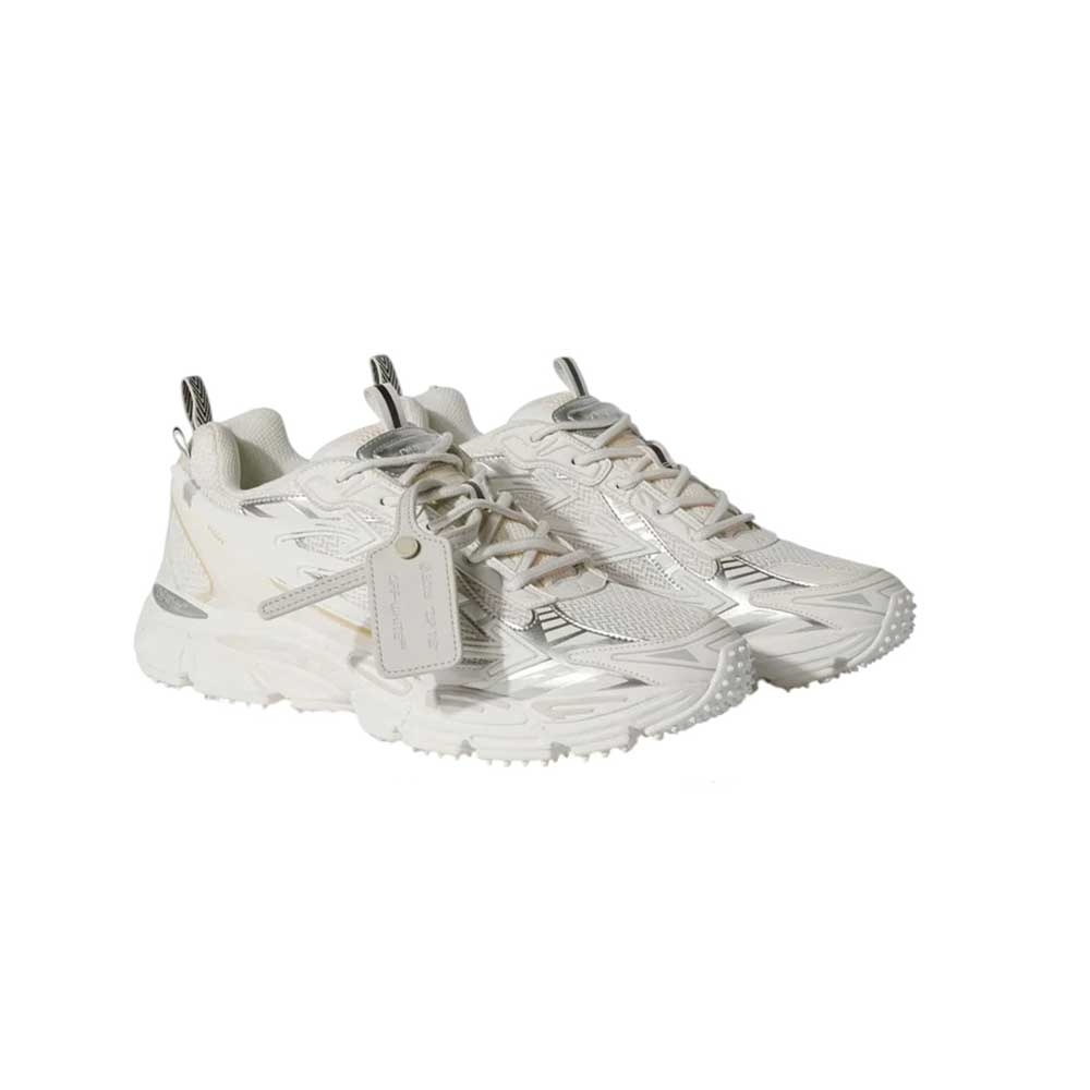 Le sneakers Off-White Be Right Back unisex combinano estetica running a un design versatile, pensato per performance ottimali. Realizzate con inserti in mesh e pelle sintetica, garantiscono traspirabilità e resistenza. Le diverse applicazioni del logo Off-White™ e la nuova versione del motivo a freccia conferiscono un carattere distintivo e moderno, ideale per chi cerca stile e funzionalità in ogni contesto urbano.