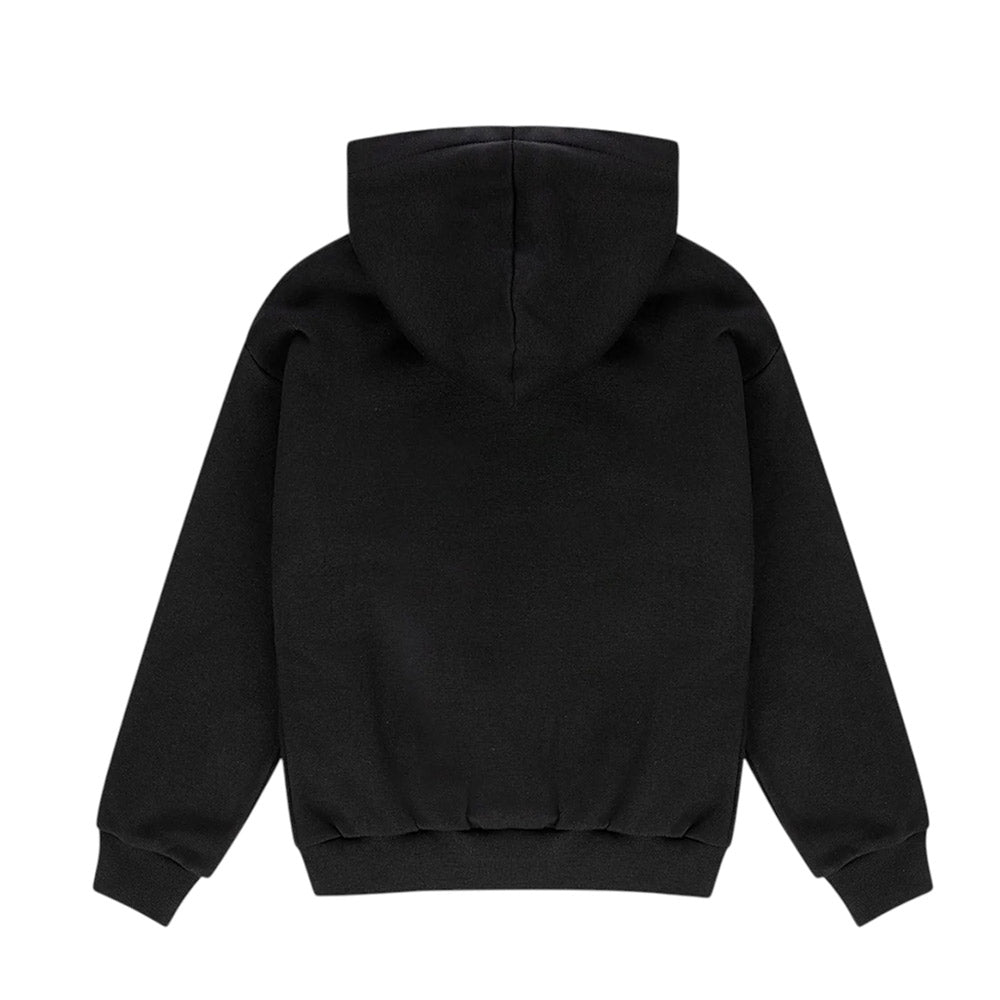 Felpa realizzata in cotone garzato caratterizzata da cappuccio, maniche lunghe, tasca a marsupio sul davanti, fodera in pile, polsi e orlo a coste. È decorata con logo effetto floccato sul davanti.