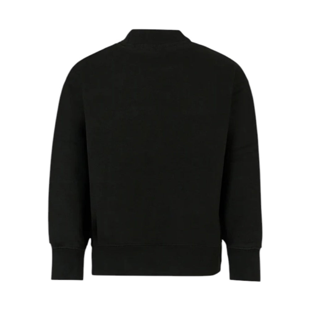 Felpa realizzata in cotone garzato, caratterizzata da collo rotondo, maniche lunghe, fodera in pile e finiture a coste. È decorata con logo azzurro sul girocollo.