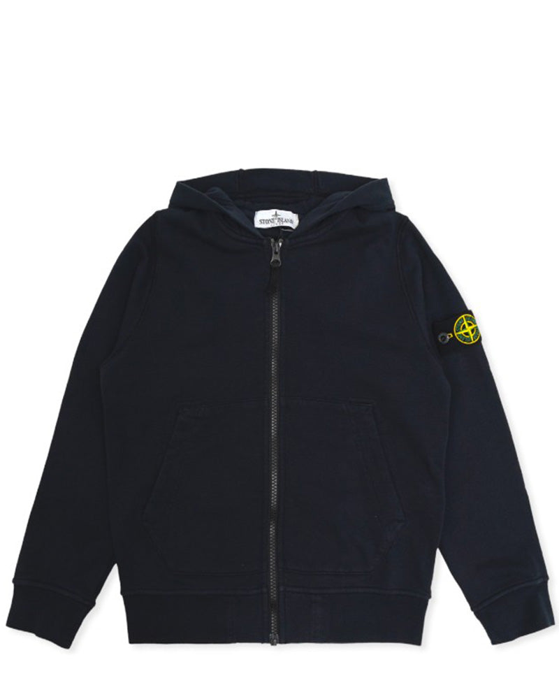 Felpa con cappuccio realizzata in french terry di cotone organico, caratterizzata dal Badge Logo applicato sulla manica sinistra e dalle cuciture overlock. Chiusura con zip e tasche a marsupio. Polsini e fondo capo rifiniti in micro costine. Vestibilità regolare.