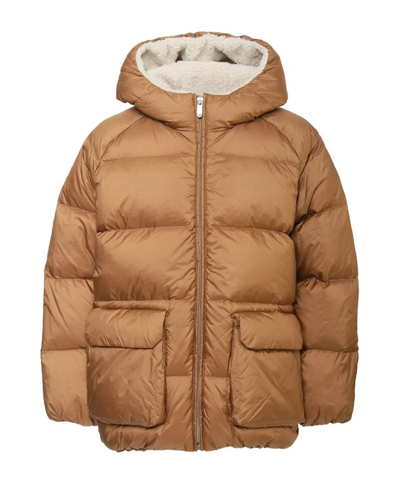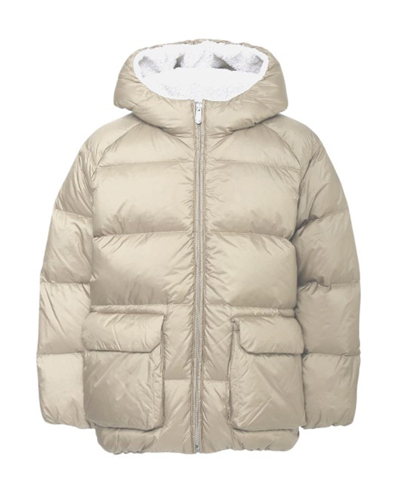 Bomber jacket for kids, patch pockets, fixed hood, zip fastening.