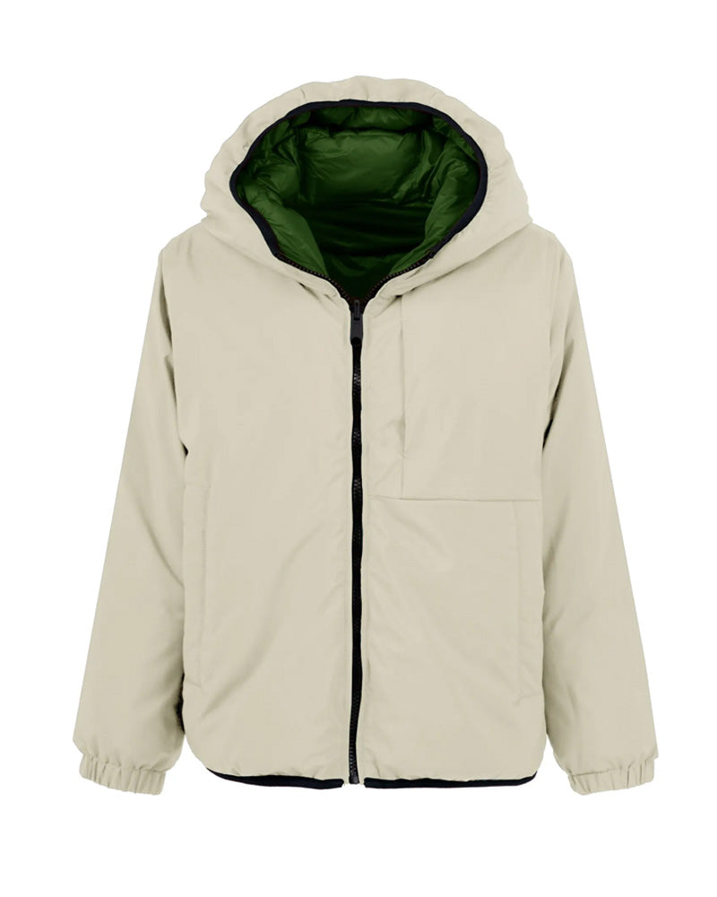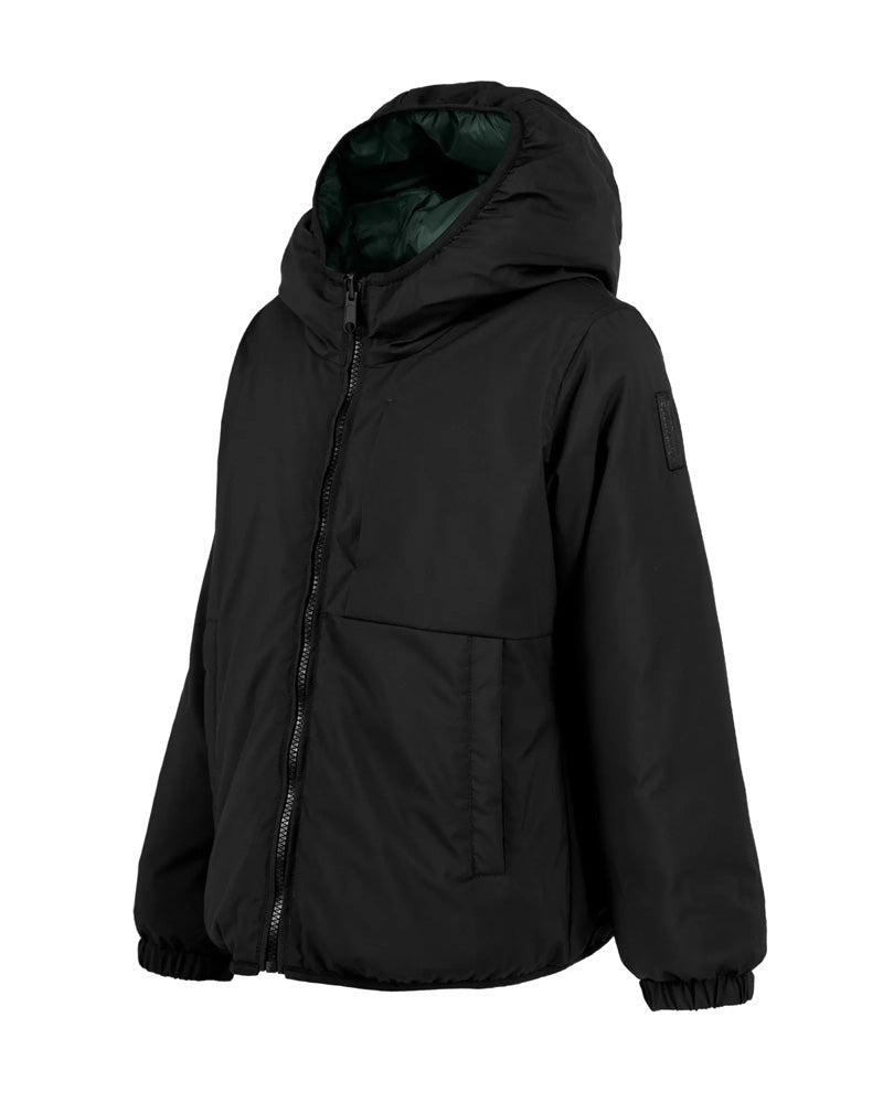 Discover the JK092DTSJ4 reversible hooded jacket for kids , the perfect choice for facing the cold with style and functionality! This jacket is reversible , offering two looks in one: one side in smooth technical micro-ripstop fabric that is windproof and rainproof, and the other in contrasting quilted nylon for a touch of originality. The synthetic feather-effect padding ensures ideal warmth, while the full-length zip fastening and front zip pockets guarantee practicality. The fixed hood and cuffs with hidden flat elastic tape complete the comfortable and protective design.