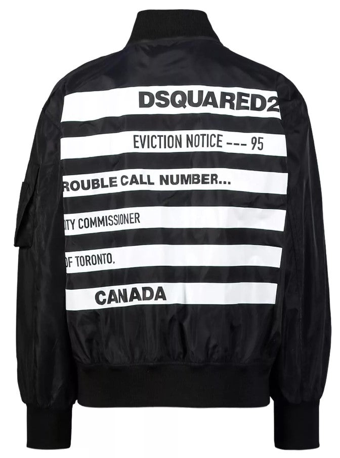 Nylon jacket, front zip fastening, decorative pocket on the sleeve, side pockets with flap, logo print on the back.